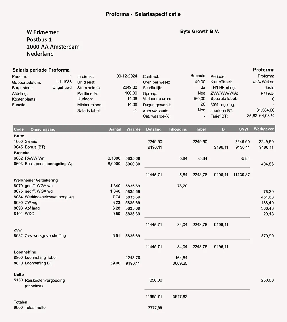 Ja. Dit is wat je gegarandeerd iedere maand krijgt. Hierboven op krijg je een bonus van 90 procent van je uurtarief minus werkgeverslasten.